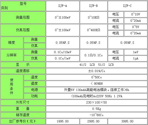全系列工業用熱電偶信號的測量和仿真及分度表查算能力。