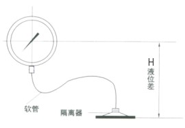 尤其是對于帶軟連接管的隔膜表,由于隔膜受壓部與通用型壓力表安裝位置不在同一水平面上,會產生液位差和影響量△P。在測量時更就注意。