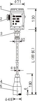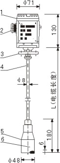 靜壓式液位變送器 結構類型 AK-LC纜式液位變送器 AK-LR桿式液位變送器 AK-LD直裝式液位變送器 AK-LC 外形尺寸 AK-LC纜式液位變送器 (普通形式連接) 1、變送器外殼 2、信號線纜接頭 3、傳感器電纜