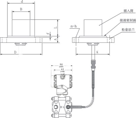 ⑤ GP型單法蘭液位變送器一側毛細管長度一般為1.5米,zui長不宜超過3米(特殊情況協議商定)。